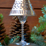 Lampenkap “Alladin” messing en verzilverd voor champagneglas met waxine.